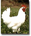 particularités : pattes bleues, plumes blanches, crête rouge. Élevage