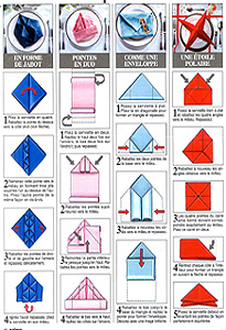 quelques exemples de pliage de serviettes pour des tables de fêtes.