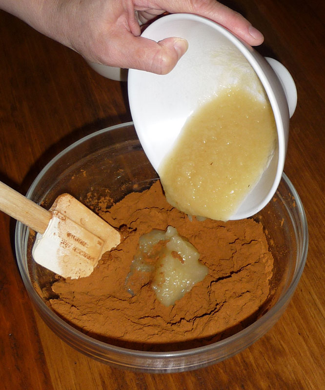 1) Commencer par mélanger une tasse de cannelle en poudre ou 113 grammes avec 1/4 de tasse ou 4 cuillerées à soupe de compote de pommes.