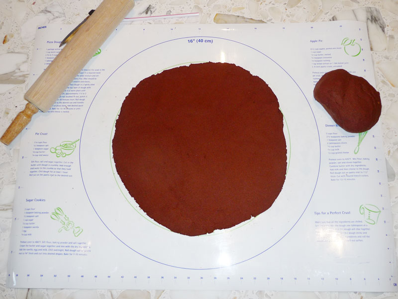 5) Etalez votre pâte à l'aide de votre rouleau à pâtisserie pour une épaisseur de 4 millimètres et un diamêtre de 30 cm environ.