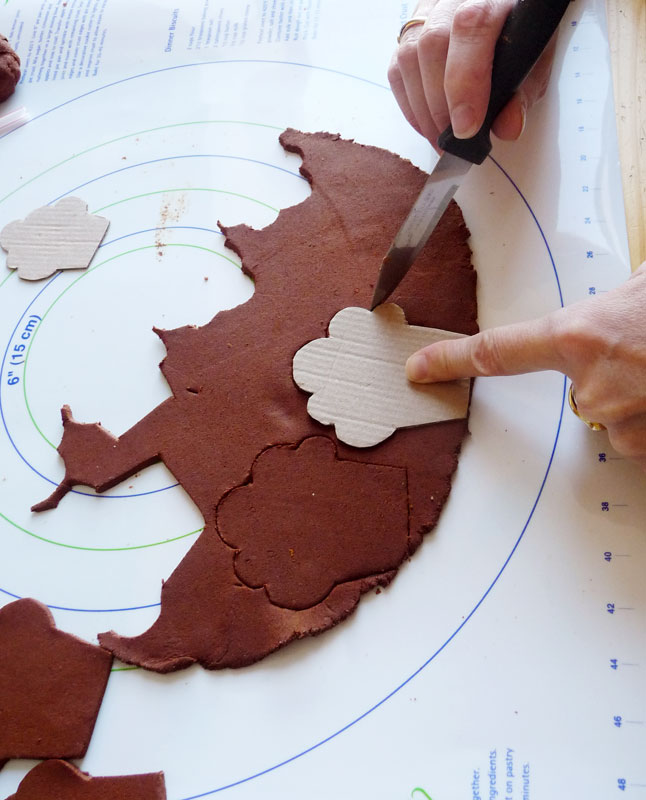 6) Utilisez des emportes -pièces ou préparer des formes dans un morceau de carton. Puis découpez vos modèles à l'aide d'un couteau bien aiguisé.