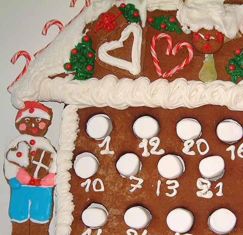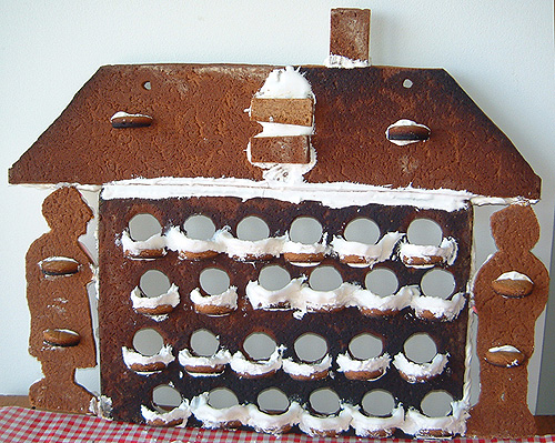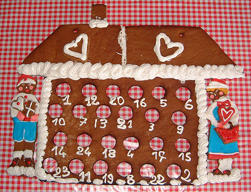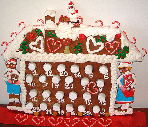 Nous tenons à préciser à nos fidèles internautes que les bonbons du calendrier sont comestibles mais que ce pain d'épice utilisé durcit trop pour être mangé.