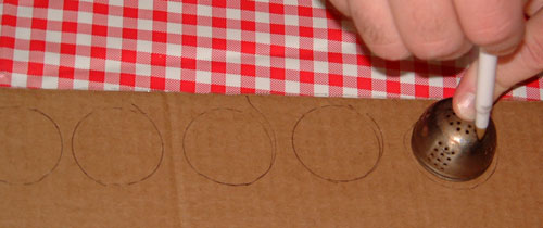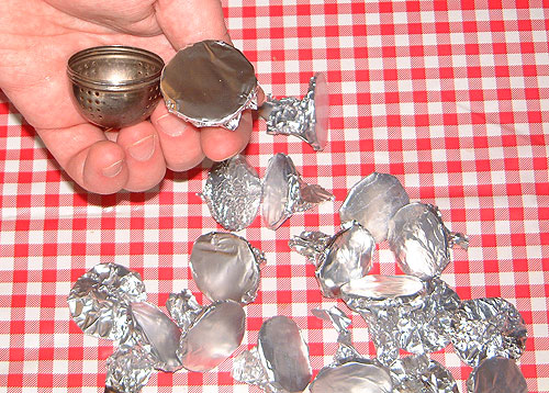 et on fait nos 24 petits trous avec la boule à thé puis on remplit les trous avec nos petits cartons recouverts d aluminium