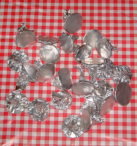 On emmaillote les 24 petits ronds cartonnés de papier d aluminium (cela vous évite d acheter 24 emporte pièces)