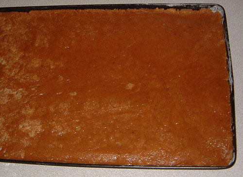 On étale sa pâte sur son moule rectangulaire préalablement fariné.