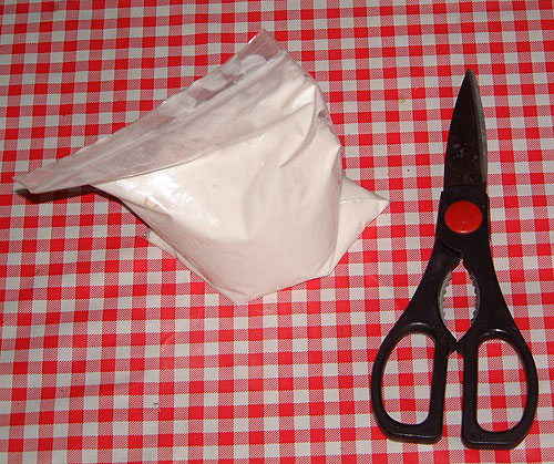 Nous avons utilisé un simple petit plastique puis nous avons mis le glaçage dedans et avons découpé la pointe pour nous faire une poche à douille.