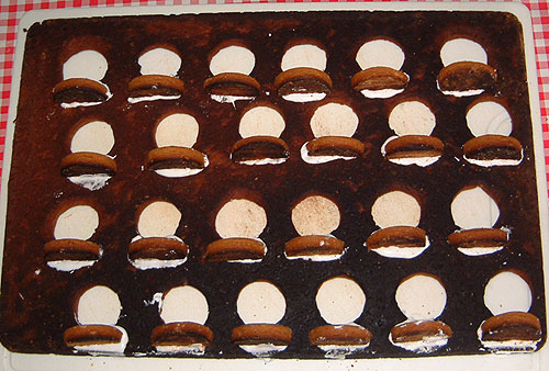 Faites cuire les petits ronds restants à part sur un autre moule rectangulaire fariné, ces petits ronds vous serviront plus tard dans le montage du calendrier.