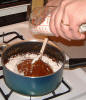 Ajoutez le sucre, la mélasse puis combinez la farine avec les épices et le bicarbonate et le sel.