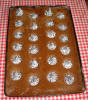 Vous prenez un carton d 'emballage vous prenez une petite boule à thé, vous tracez vos 24 petits cercles sur le carton, vous les découpez et vous les recouvrez de papier d aluminium en laissant une petite pointe pour les démoulez plus facilement après la cuisson.