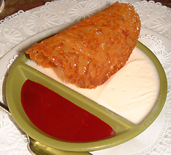 Servir tiède avec une boule de glace vanille et un coulis de fruits.