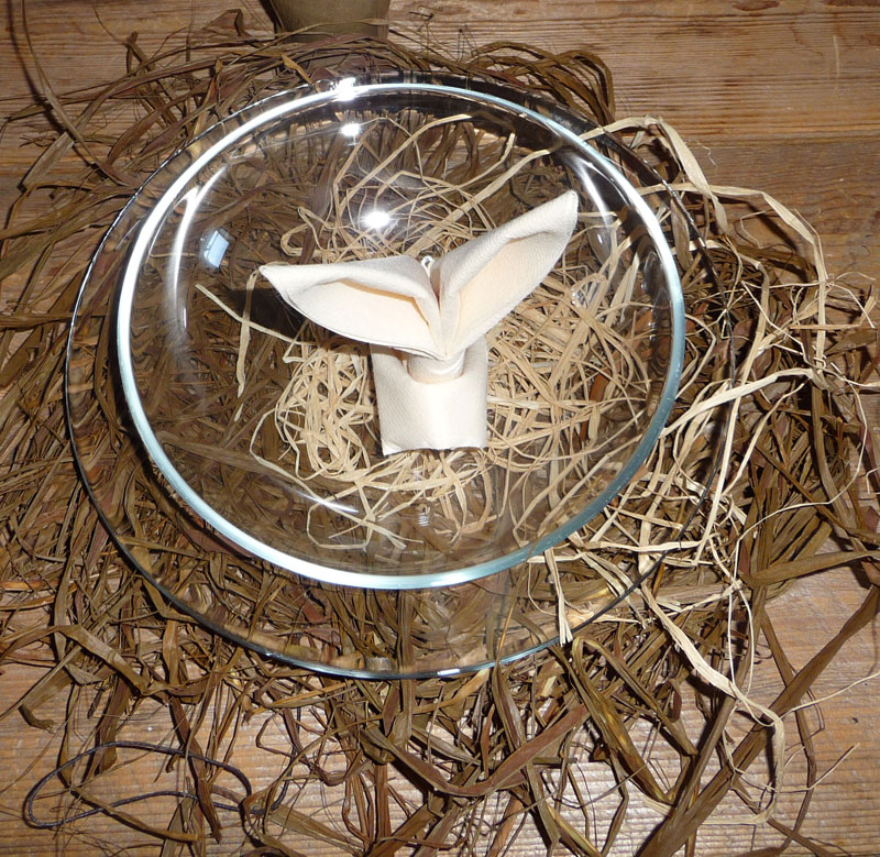 assiettes transparentes pour imiter le nid d'une poule en train