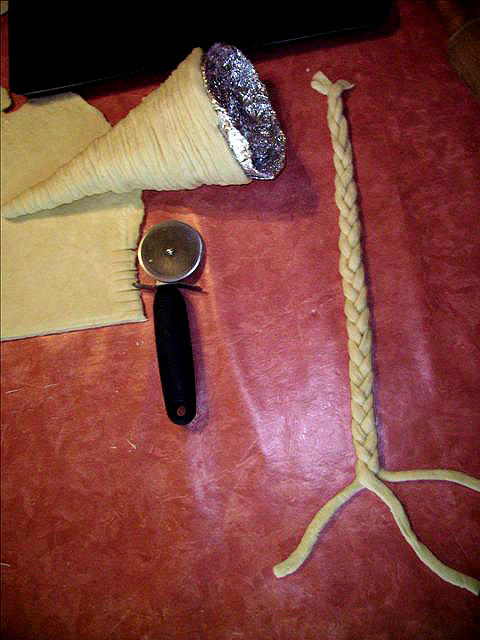 Une fois rendu vers la fin de votre corne, gardez 3 languettes de pâte