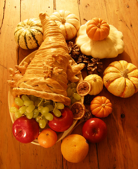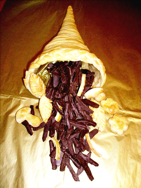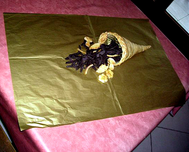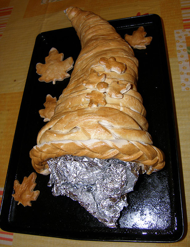 corne d'abondance en commençant par le bout le plus mince. Pour