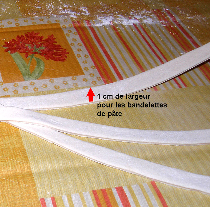 Etalez votre pâte et coupez des languettes avec votre roulette, commencez à les appliquer sur la