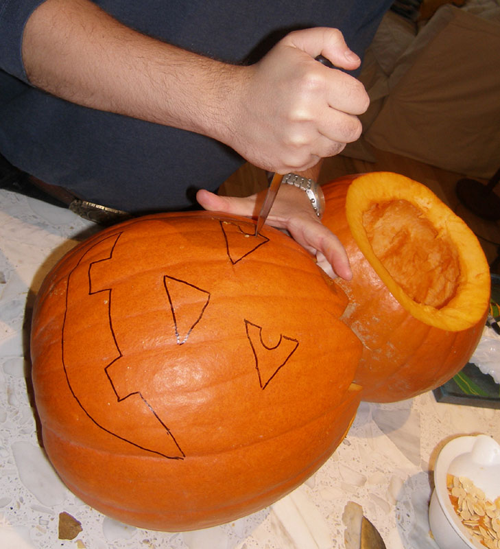 La citrouille étant un fruit dur, soyez prudents en incisant la