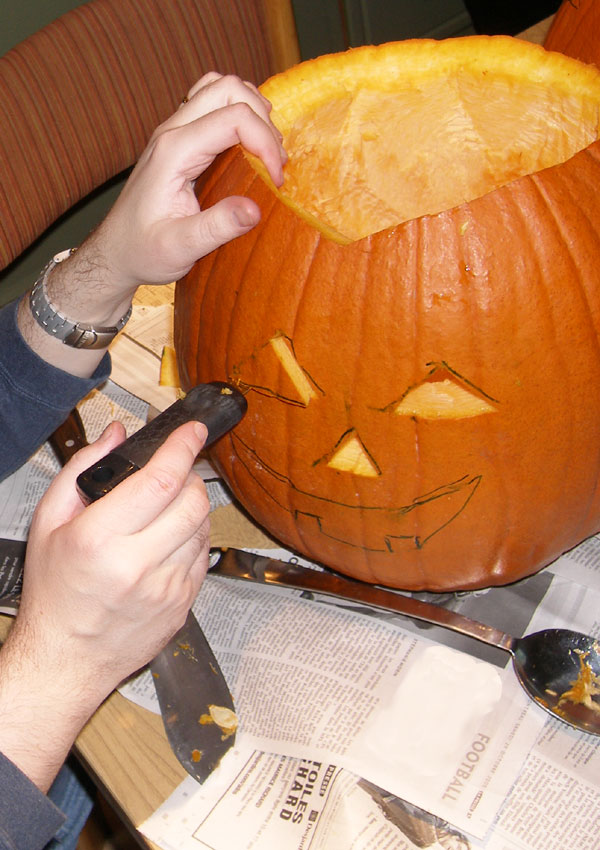 Évidez votre citrouille à l aide de votre petite cuillère.