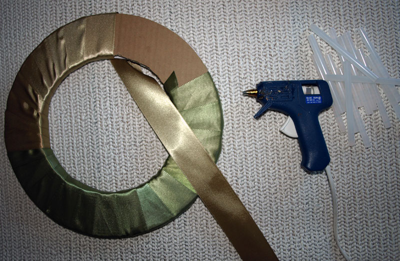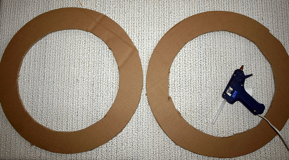 Collez vos deux ronds de carton l'un sur l'autre. Puis entourez de ruban votre cercle en le collant à l'aide du pistolet à colle.