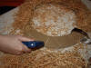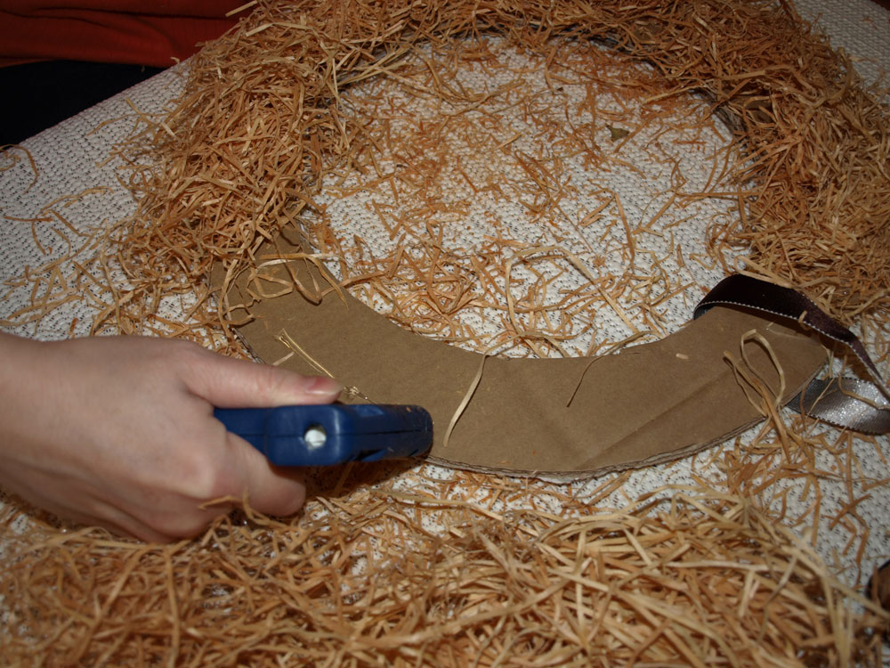 pistolet à colle déposer le raphia ou paille récupérée (qui sert