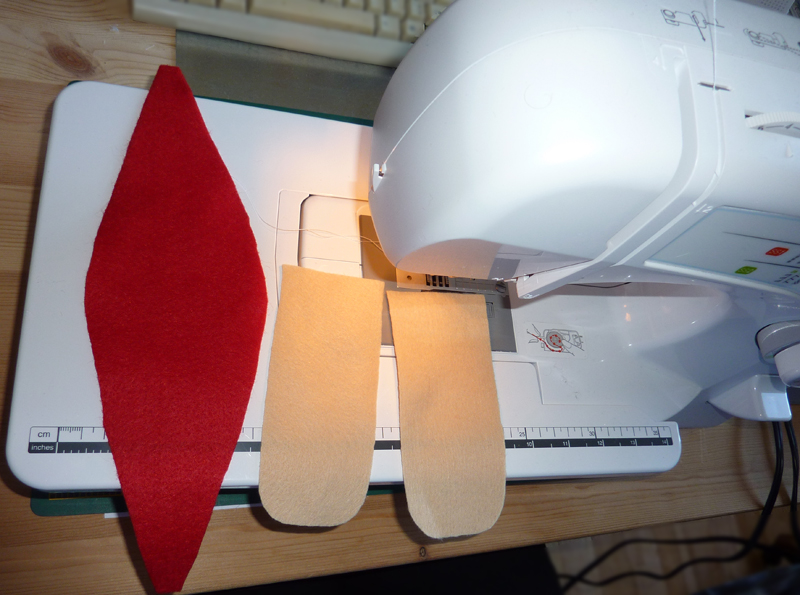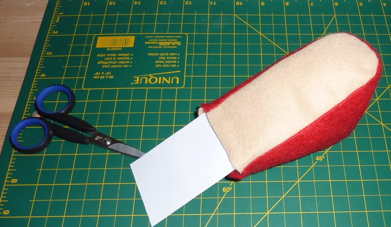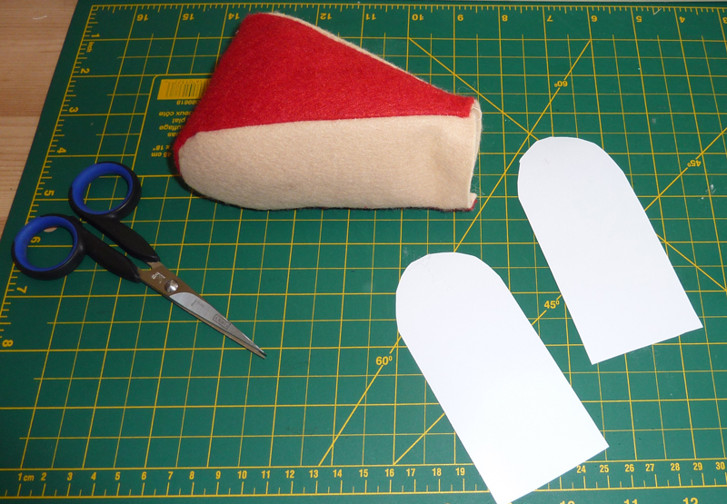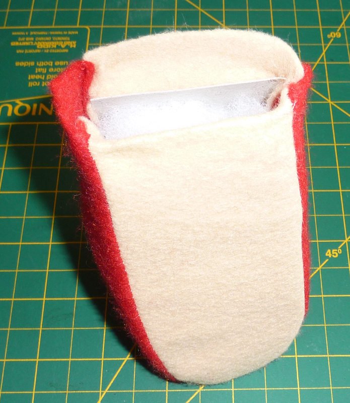 rouge et de la feutrine de couleur beige, un morceau de carton très fin,