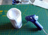couleur beige, une paire de ciseaux et un pistolet à colle.