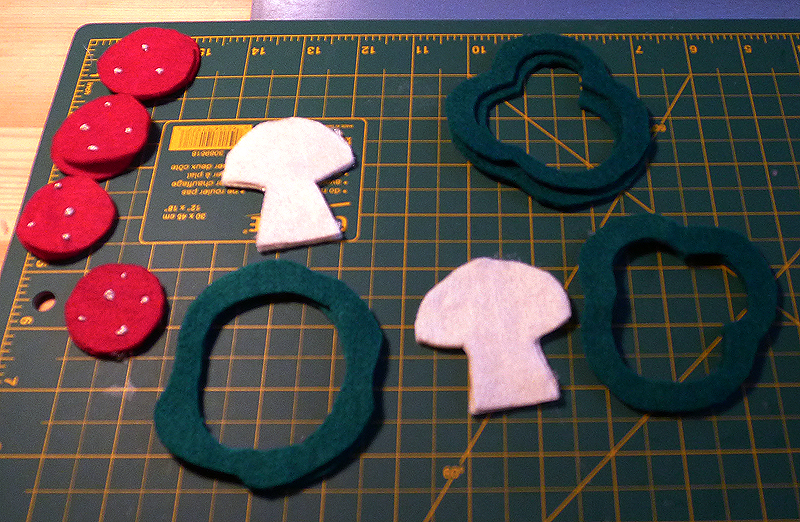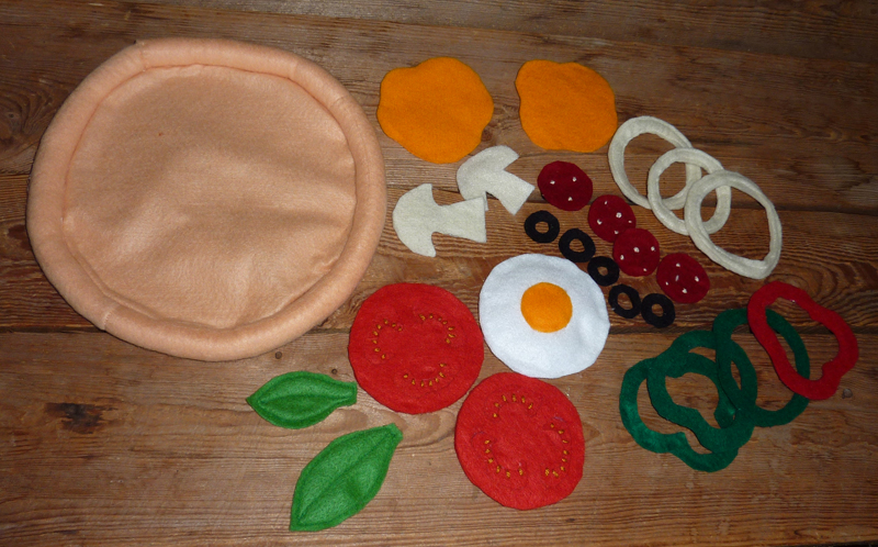 feuille de feutrine de couleur noire pour les olives, une verte pour les