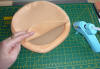 un pistolet à colle, une feuille de carton et de la bourre synthétique