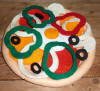 le fromage cheddar, une bordeaux pour les pepperonis une blanche pour