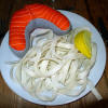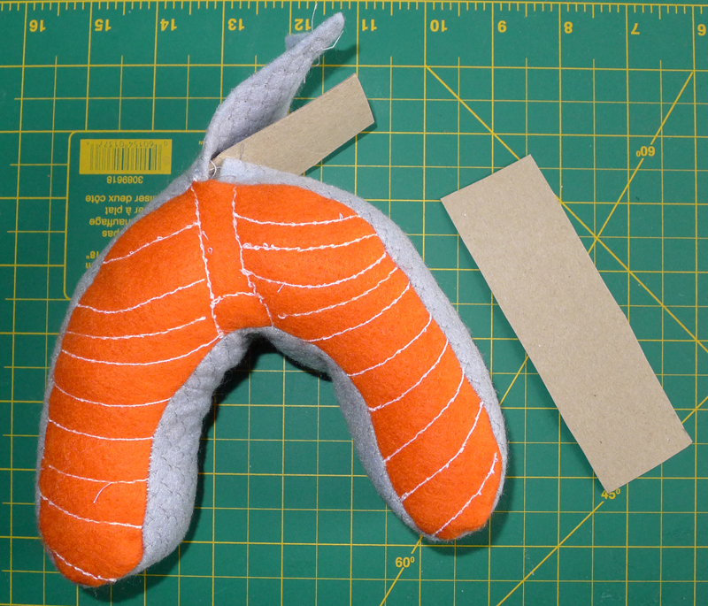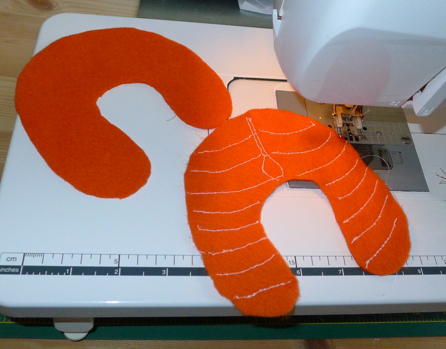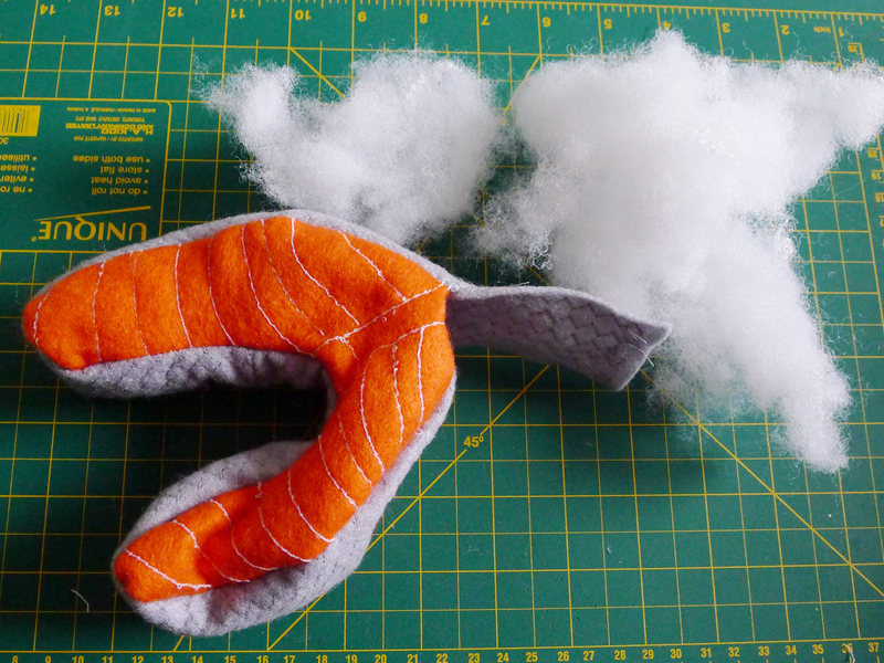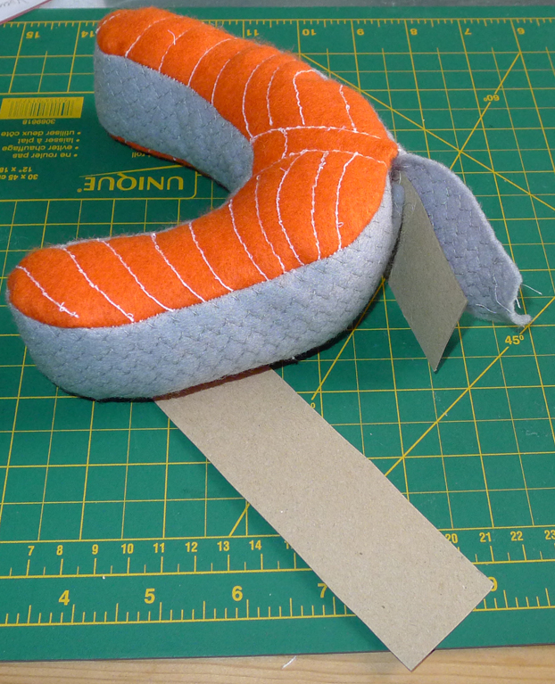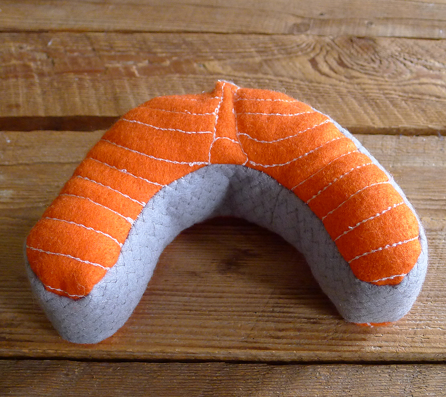 l'arête principale entre la chair du saumon j'ai cousu des motifs avec