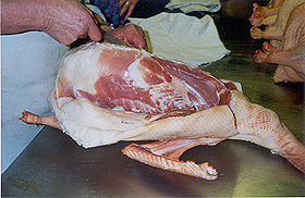 commence par trancher d'abord les ailes et le cou, puis inciser à