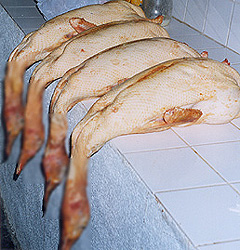 Les Oies et les Canards sont éviscérés et les foies