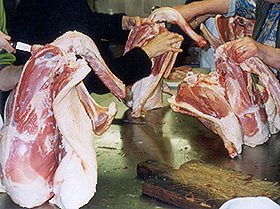 l'opération du parage, qui consiste à découper les magrets et les