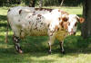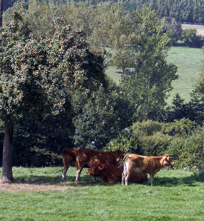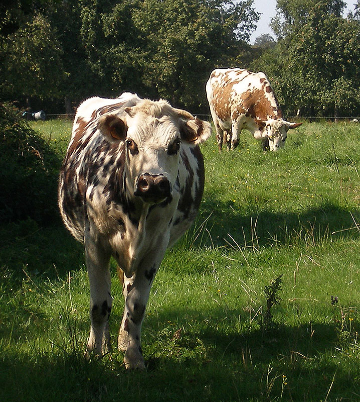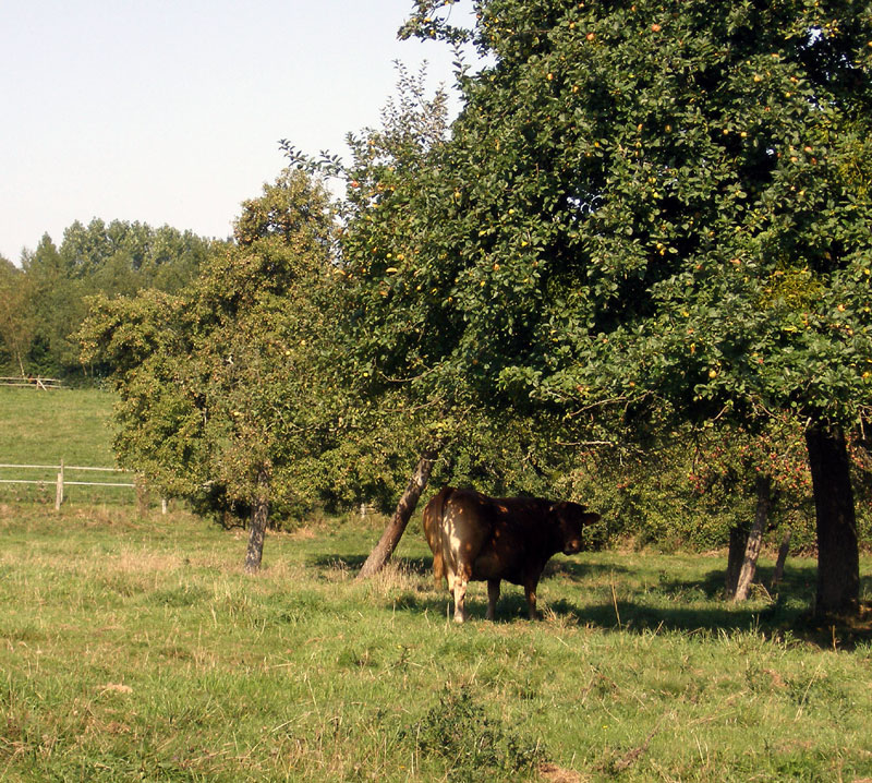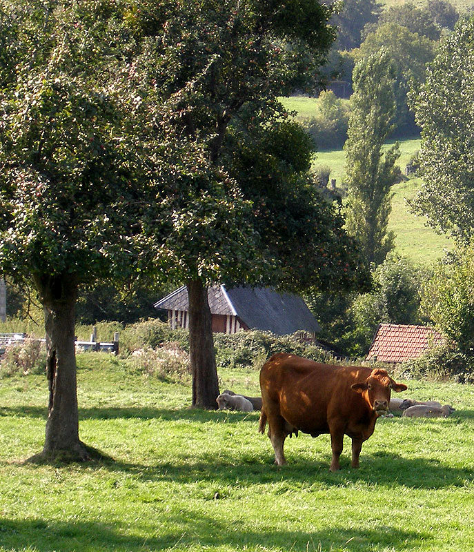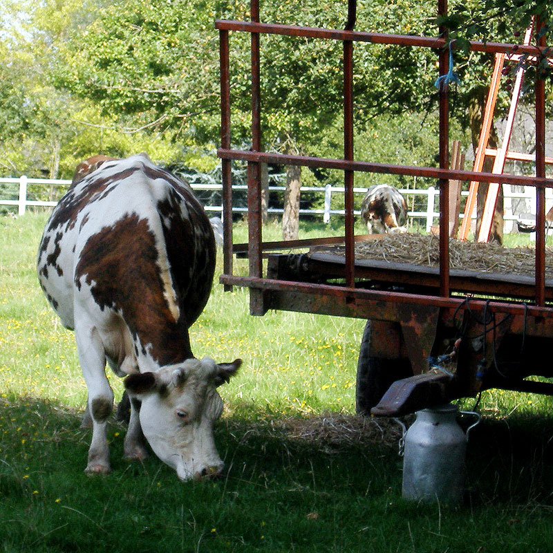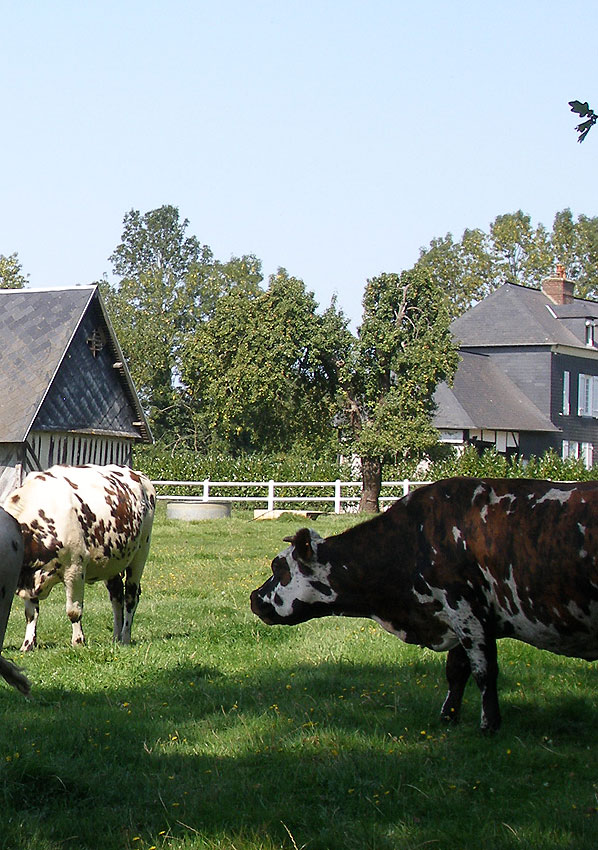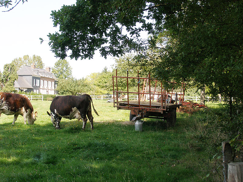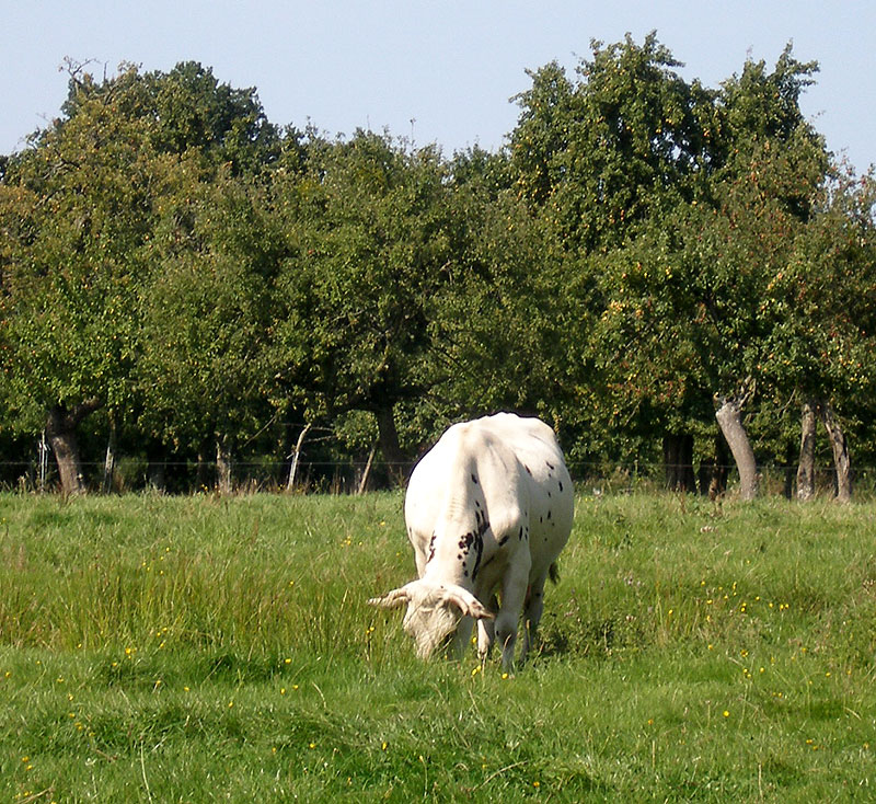Photos de belles vaches paissant bien tranquillement dans leur pré normand.