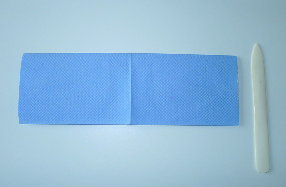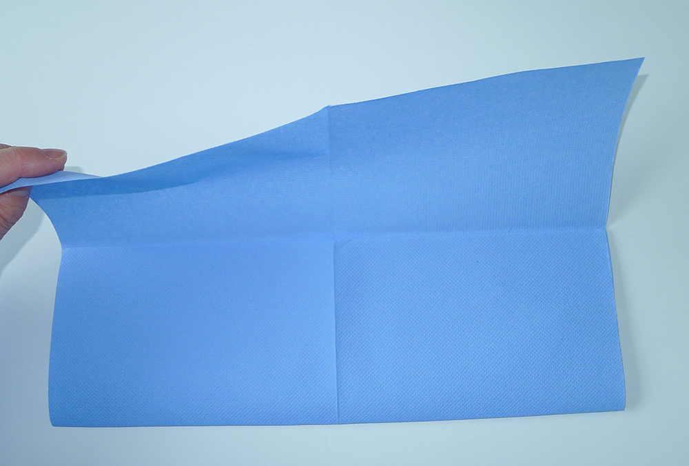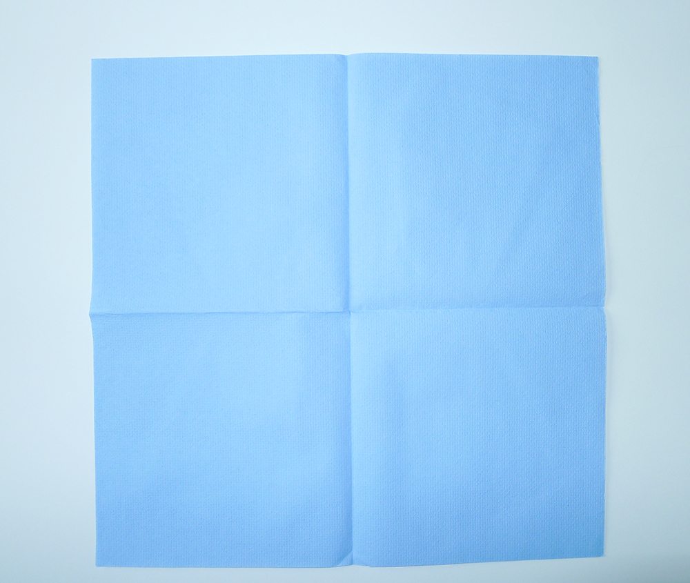 1) Utiliser une serviette en papier de forme carré. Pour cet exemple nous avons utilisé une serviette de 33 par 33 cm.