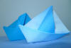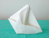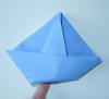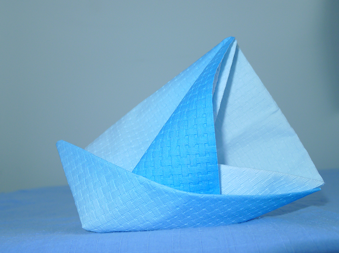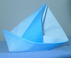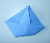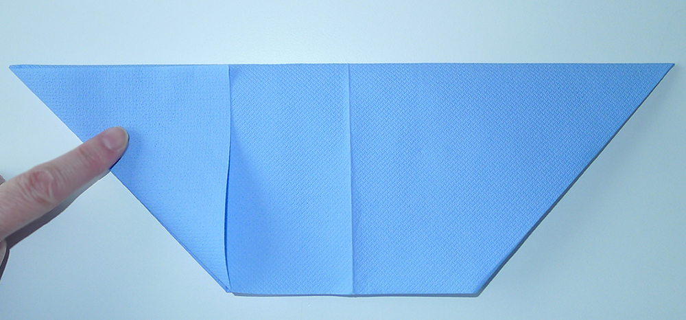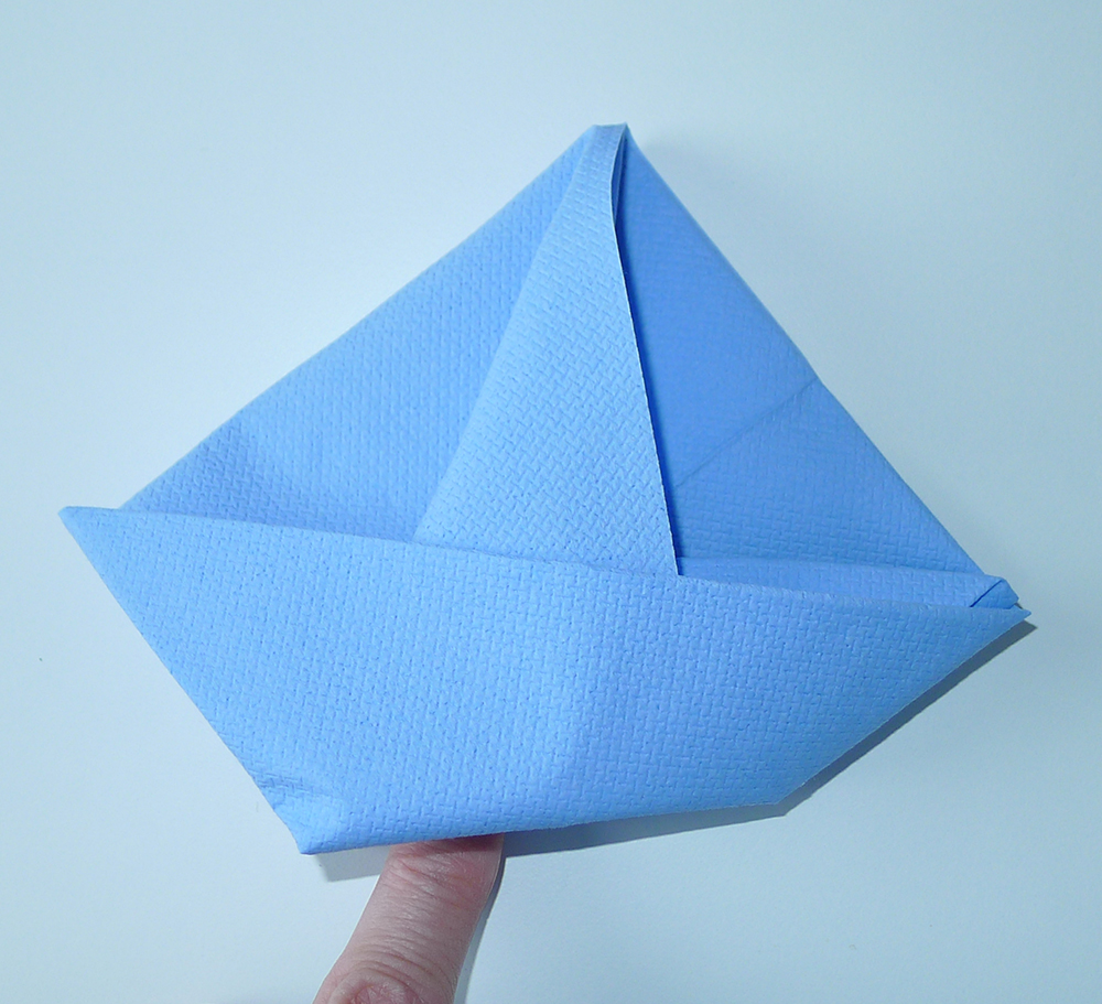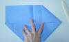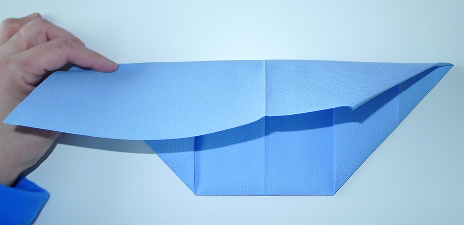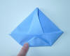 21) Pliez la pointe du bas et appuyer fortement puis relâcher pour bien marquer le pli qui ira sous le voilier à l’étape suivante.
