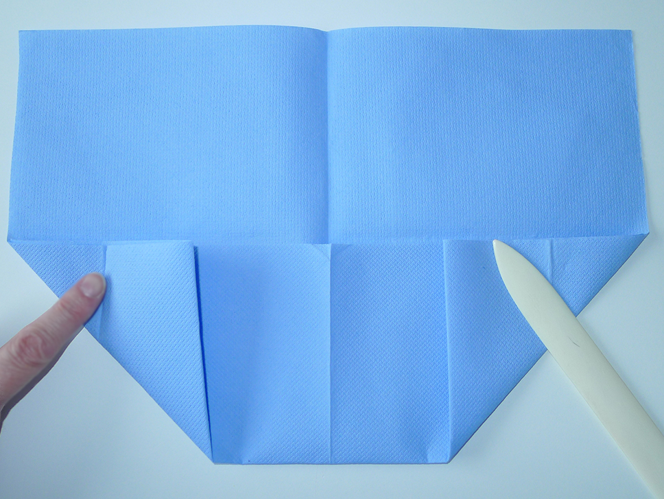 2) Pliez le pan du bas vers le haut pour faire 3 pans de même hauteur. Pour nous cela fera 3 pans de 11 cm chacun.