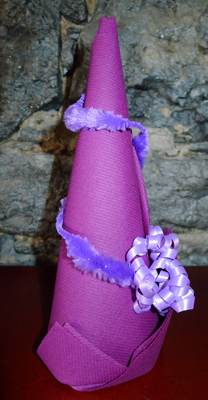 6) Retournez votre cône et repliez la base pour faire le rebord du chapeau.