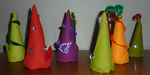 9) Vous pouvez l’utiliser soit en chapeau de lutin ou former une mini forêt de sapins de Noël.