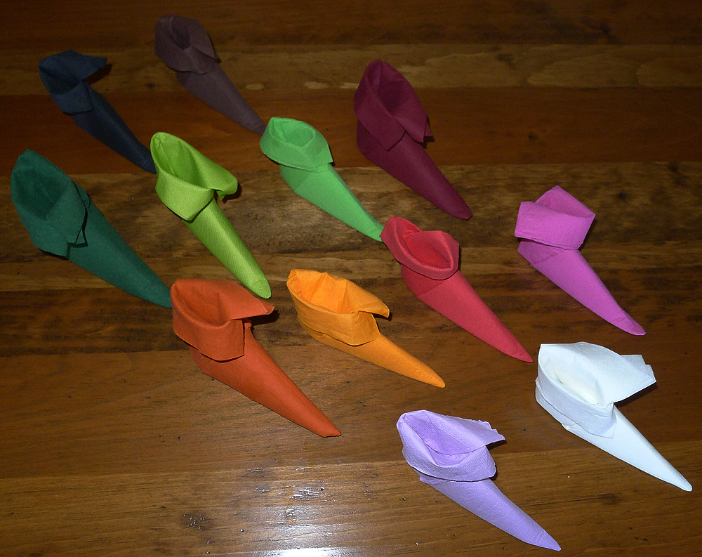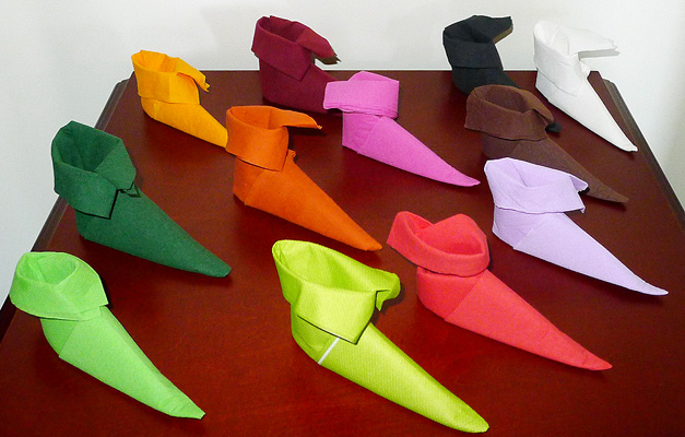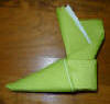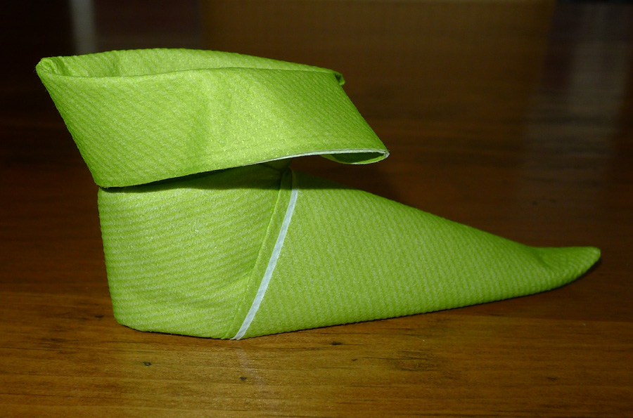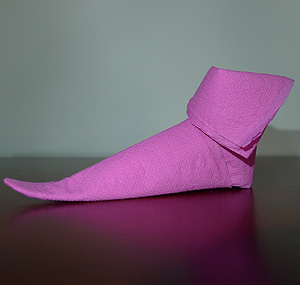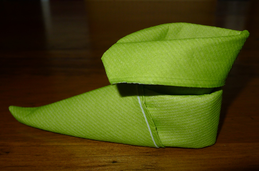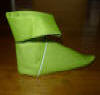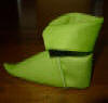 14 ) Rabattre la partie du haut pour faire le rebord du chausson. Tortillez la pointe du chausson pour ressembler aux chaussures médiévales.