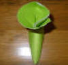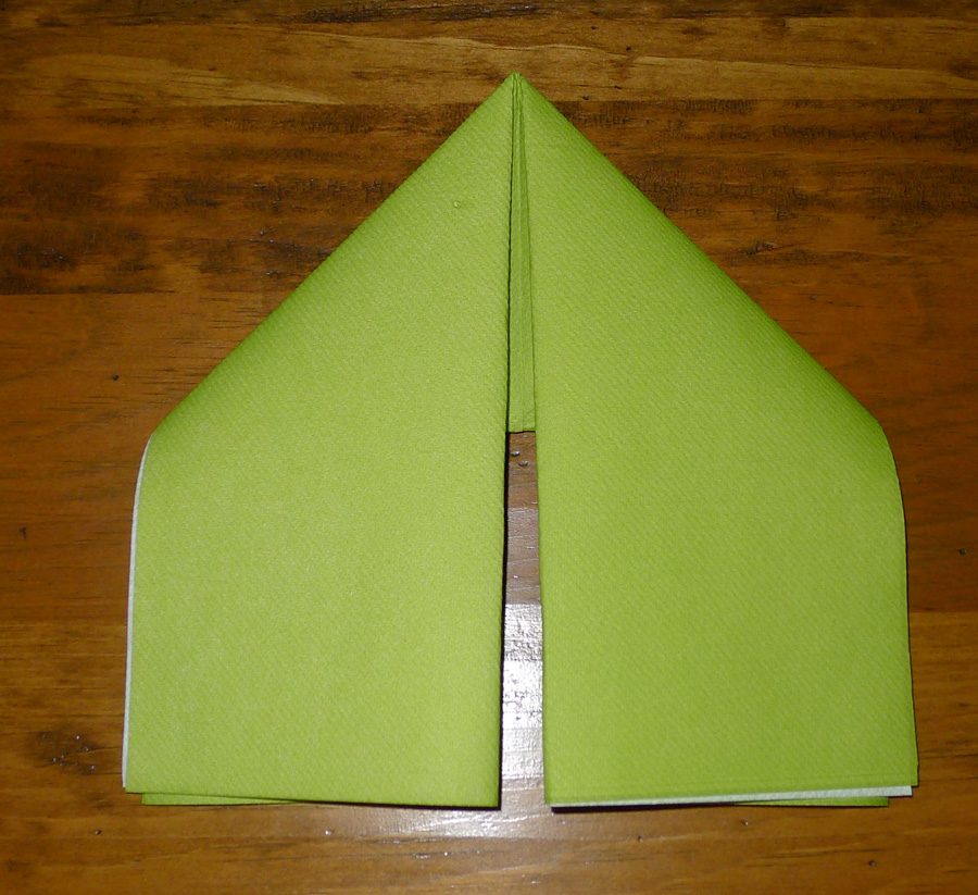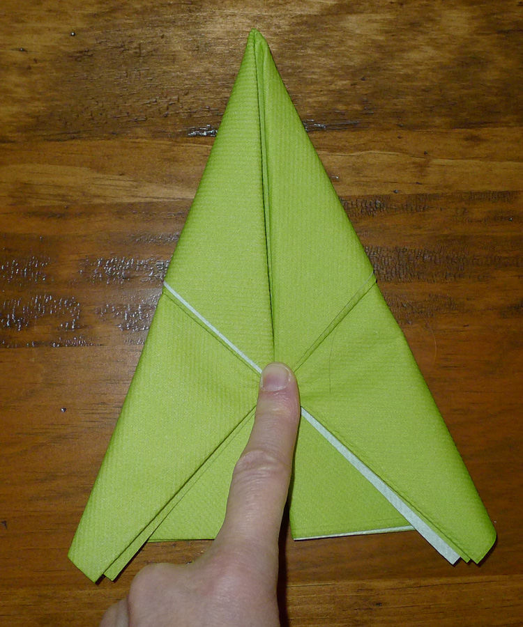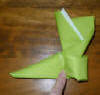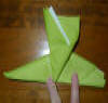 5) Prendre la pointe du haut à droite et la ramener elle aussi vers le milieu en bas.(Vous obtiendrez une pointe)