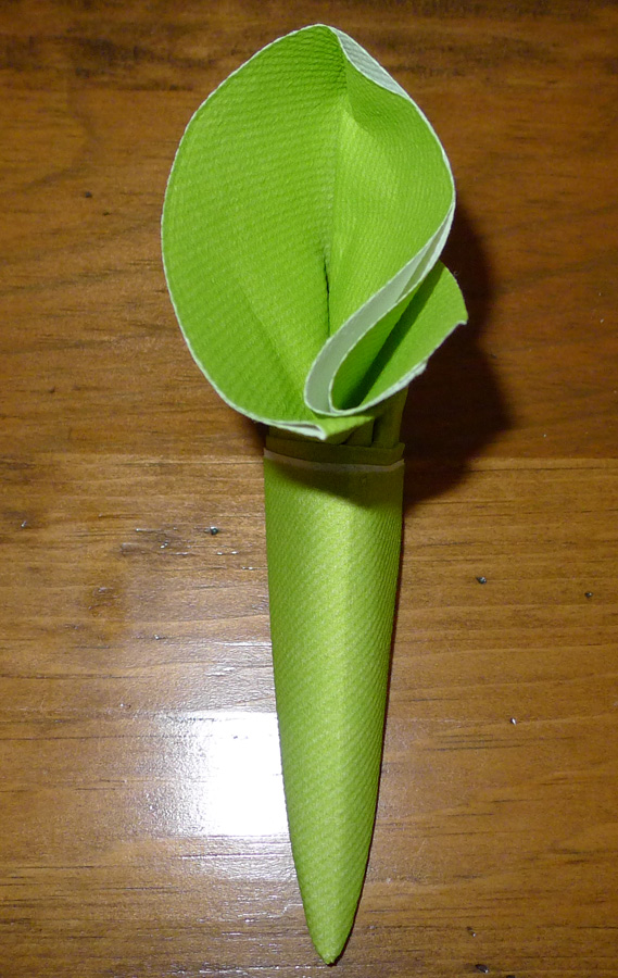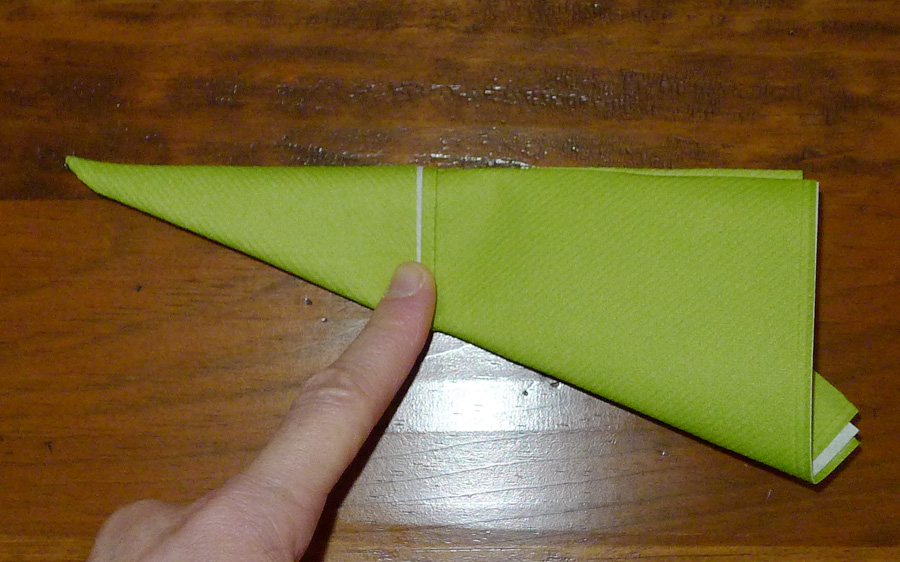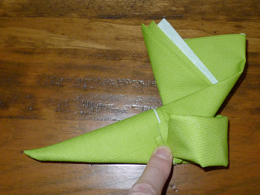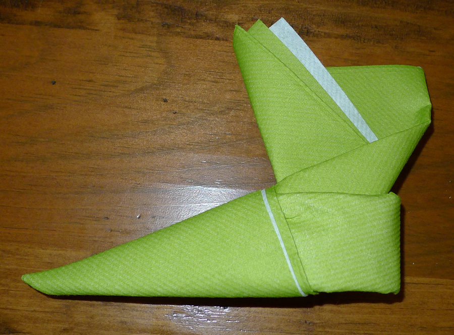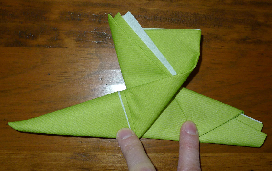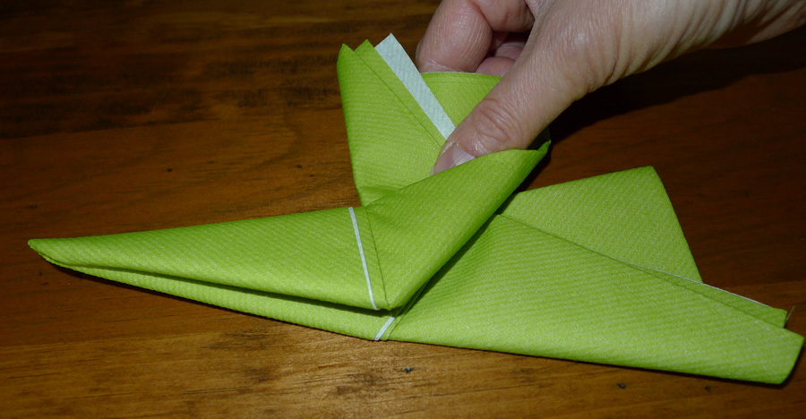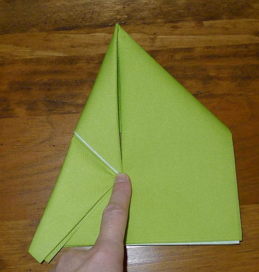 4) Prendre la pointe en haut à gauche et la ramener vers le milieu en bas.