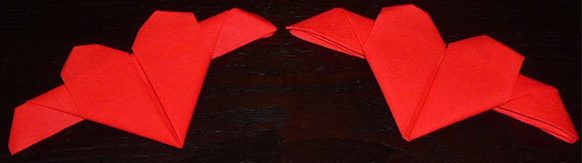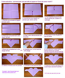 Pliage de serviette en papier en forme de coeur avec ses ailes