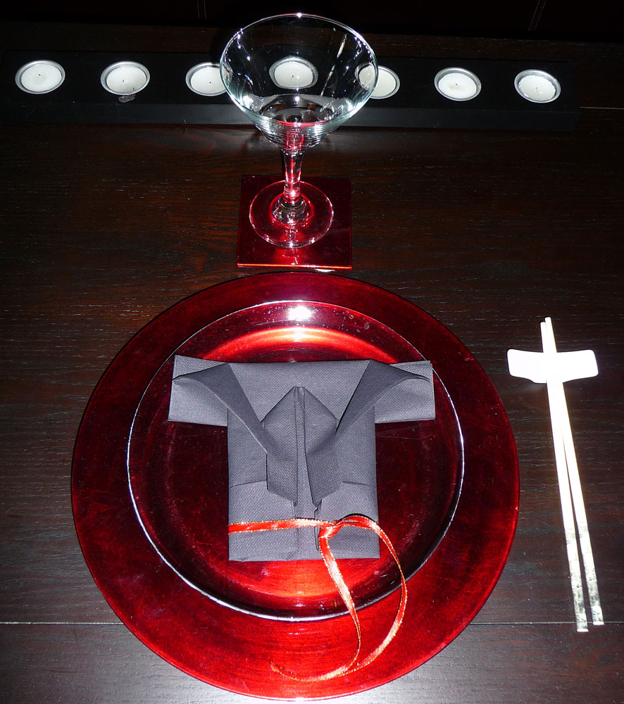 1) Placez une serviette carré devant vous.