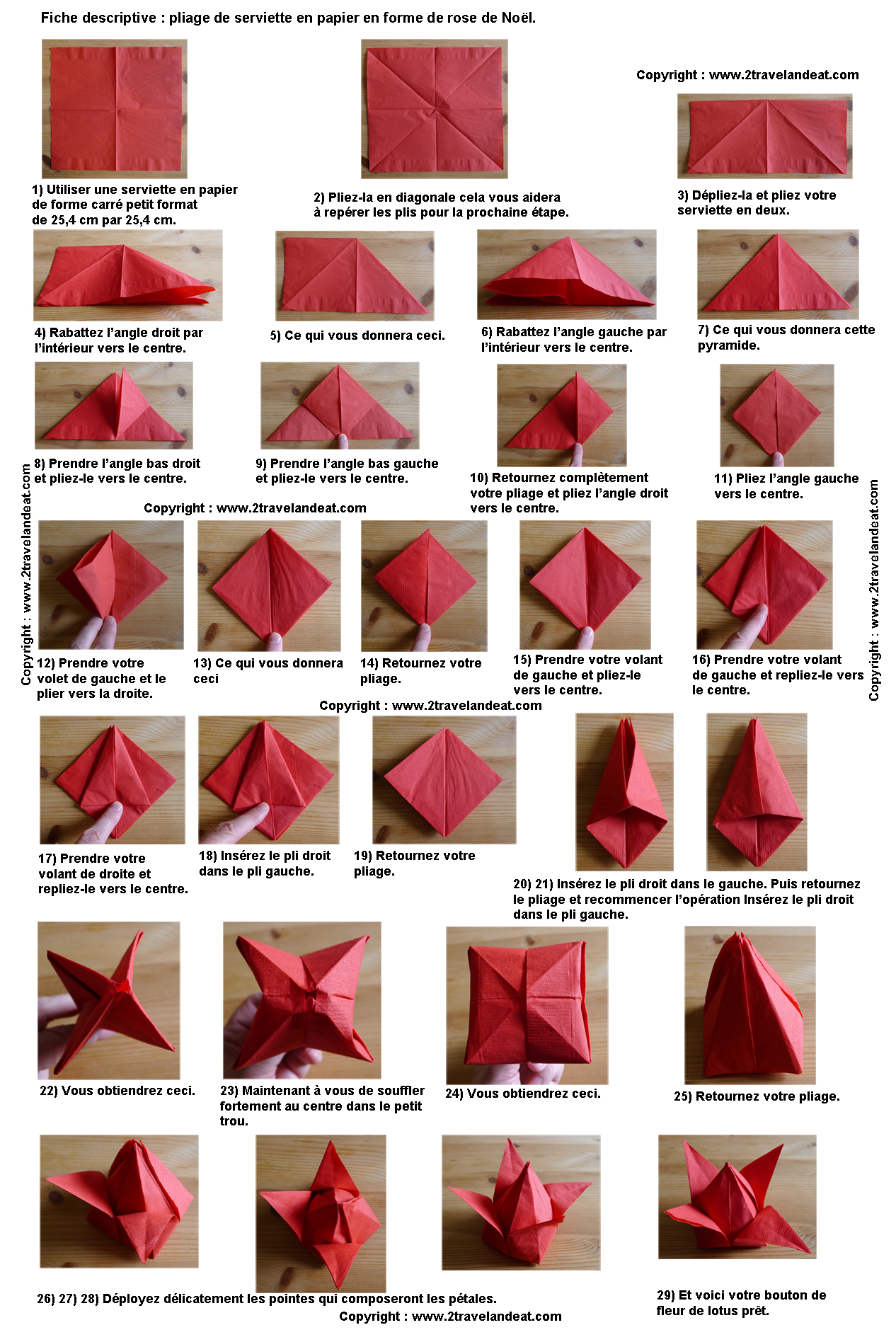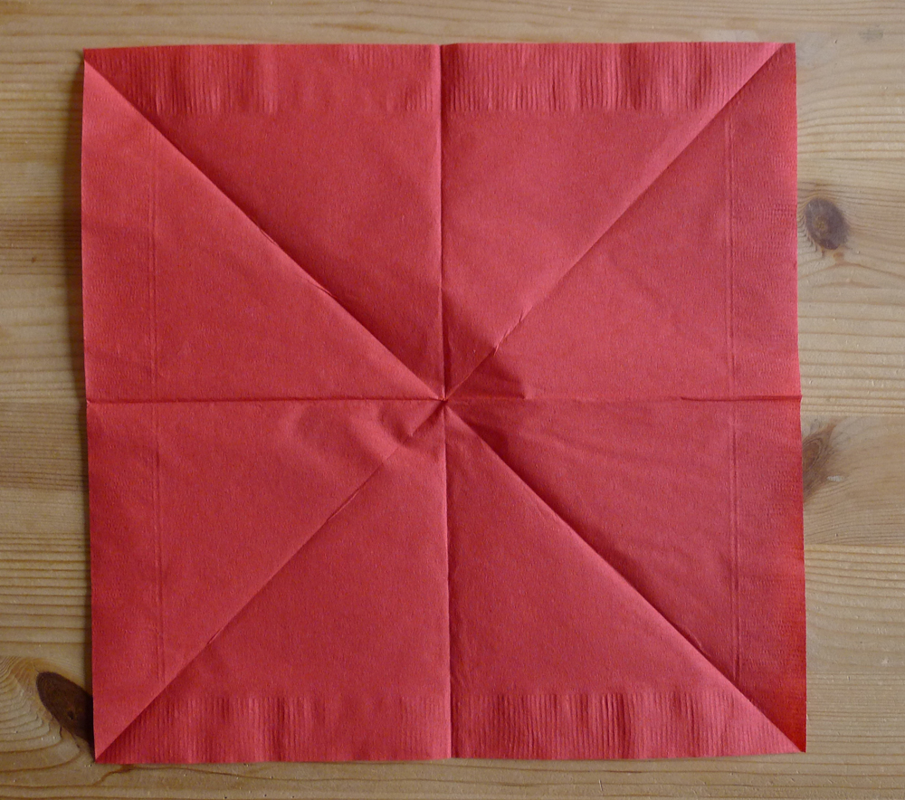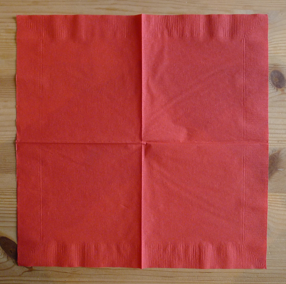 1) Utiliser une serviette en papier de forme carré petit format de 25,4 cm par 25,4 cm.