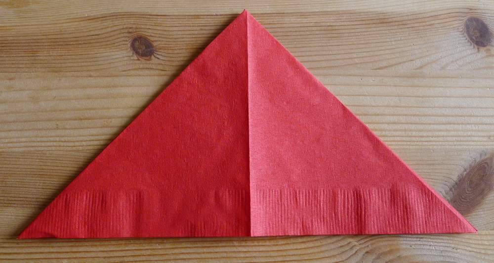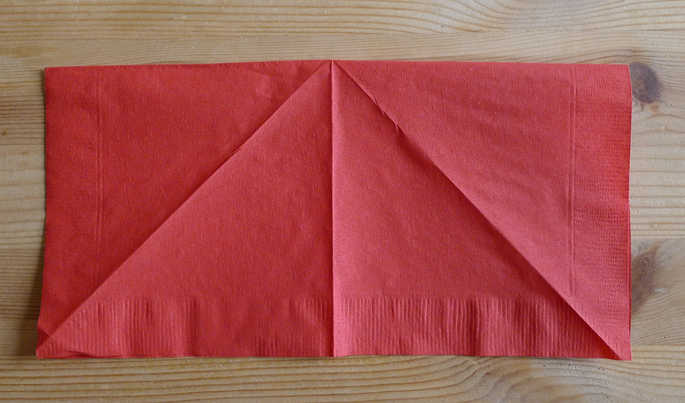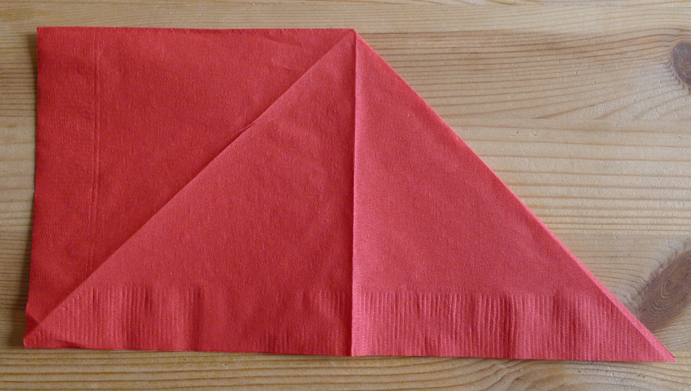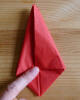 2) Pliez la serviette en diagonale cela vous aidera à repérer les plis pour la prochaine étape.