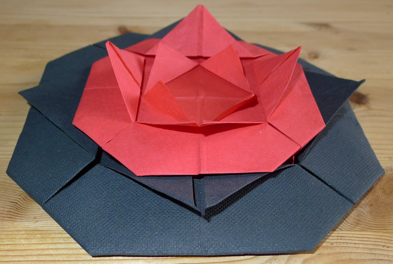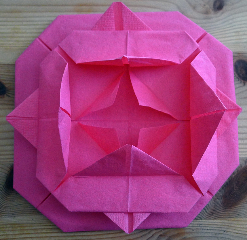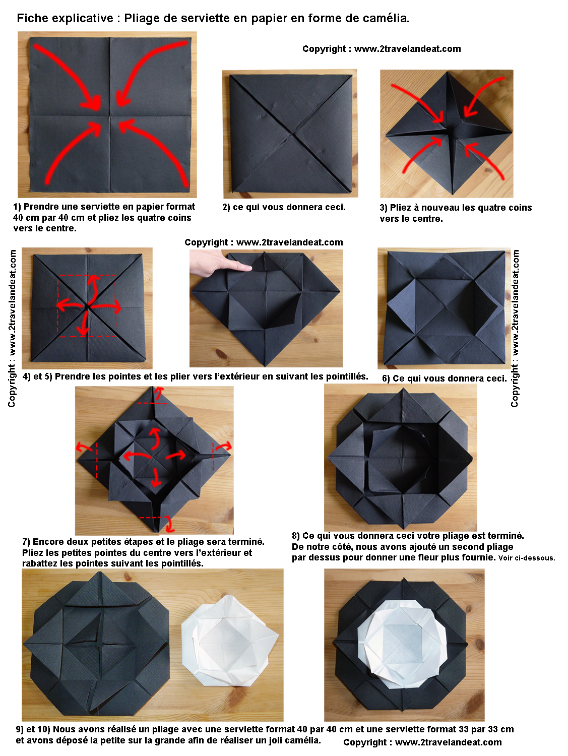Pliage de serviettes en papier en forme de camélia pour vos repas de fêtes : Noël, Nouvel An, anniversaires, mariages, etc etc... Pliage facile.