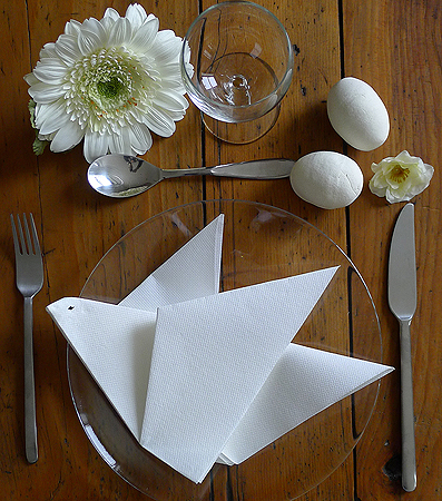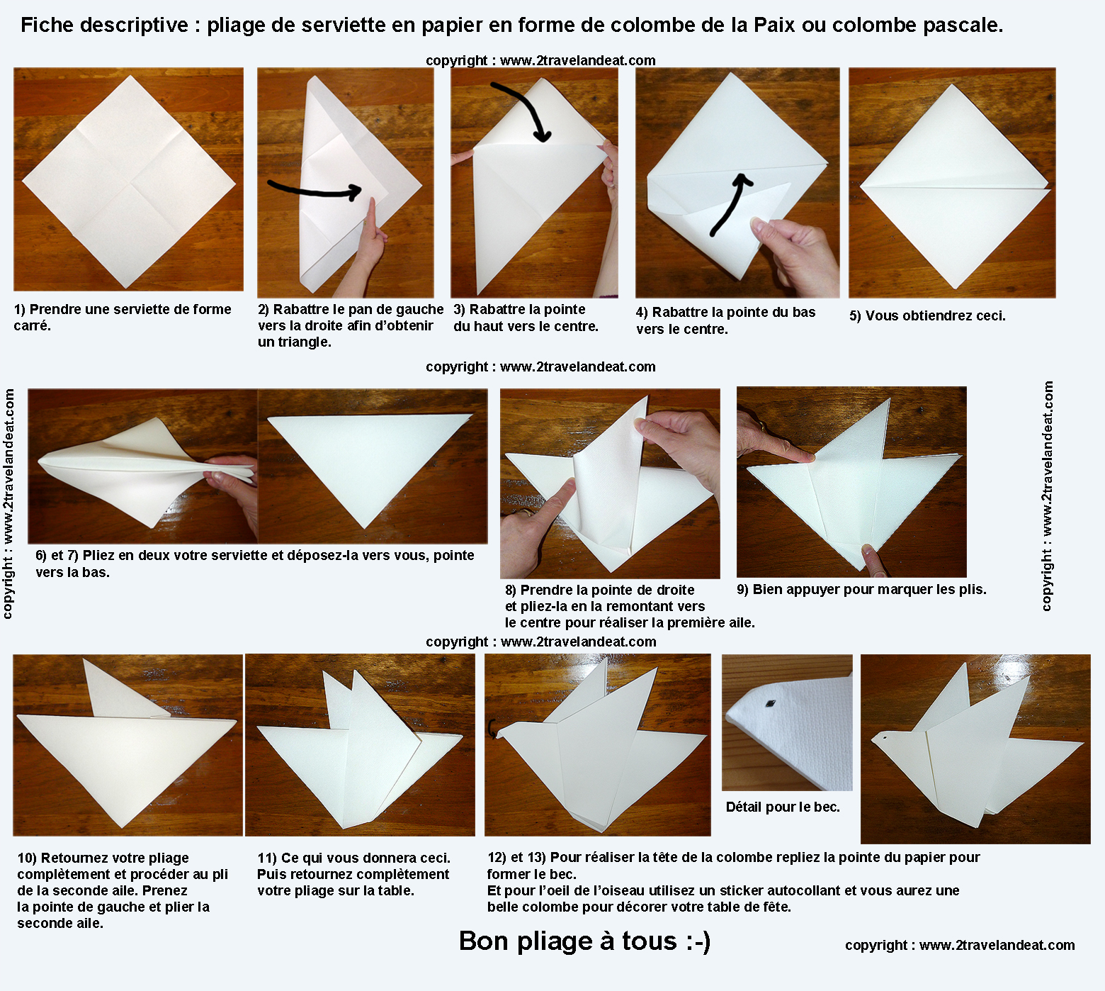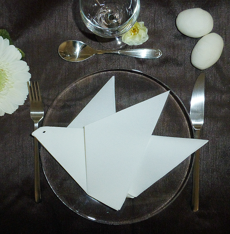 Et pour l’oeil de l’oiseau utilisez un sticker autocollant et vous aurez une belle colombe pour décorer votre table de fête.