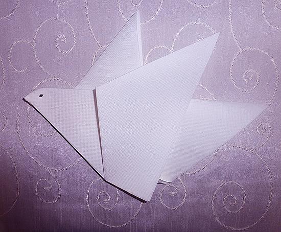 12) et 13) Pour réaliser la tête de la colombe repliez la pointe du papier pour former le bec.
