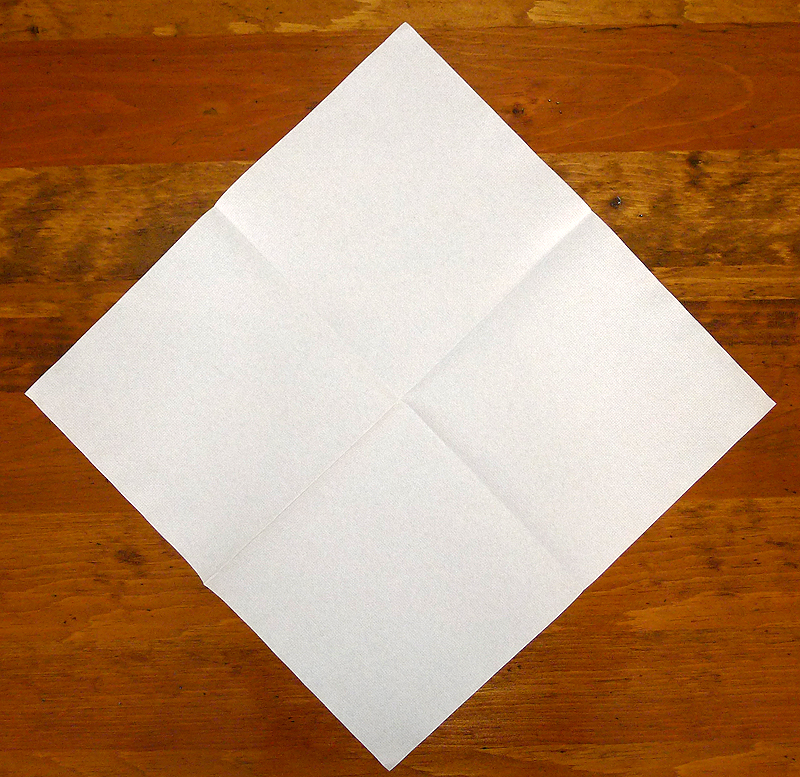 6) et 7) Pliez en deux votre serviette et déposez-la vers vous, pointe vers la bas.
