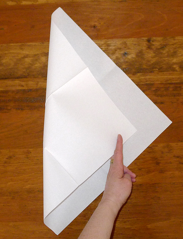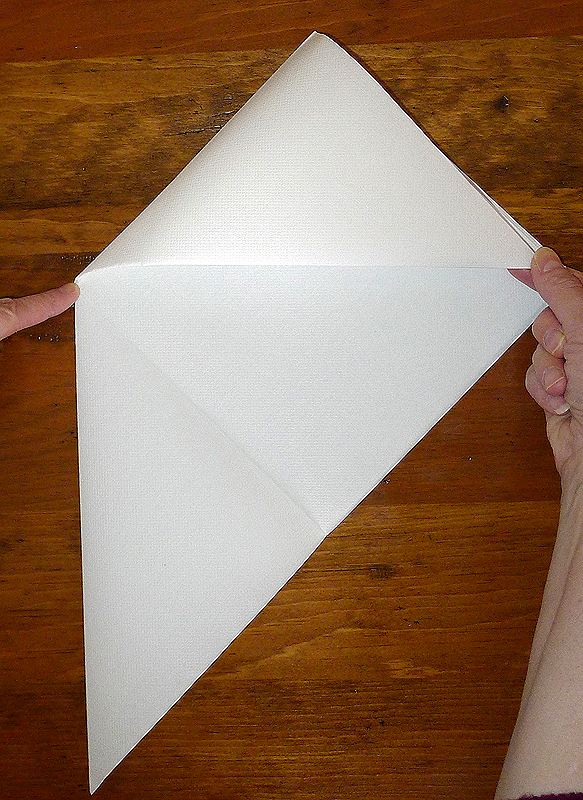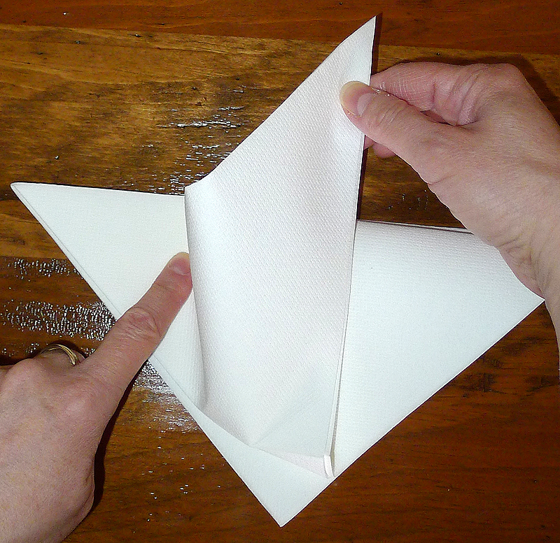 2) Rabattre le pan de gauche vers la droite afin d’obtenir un triangle.