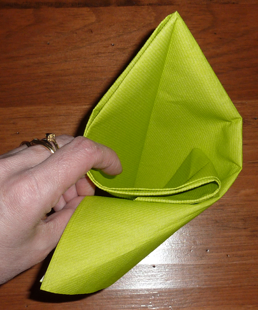 Replier la pointe de gauche dans le pli ou fente de gauche.
